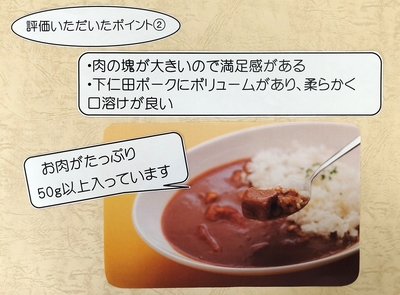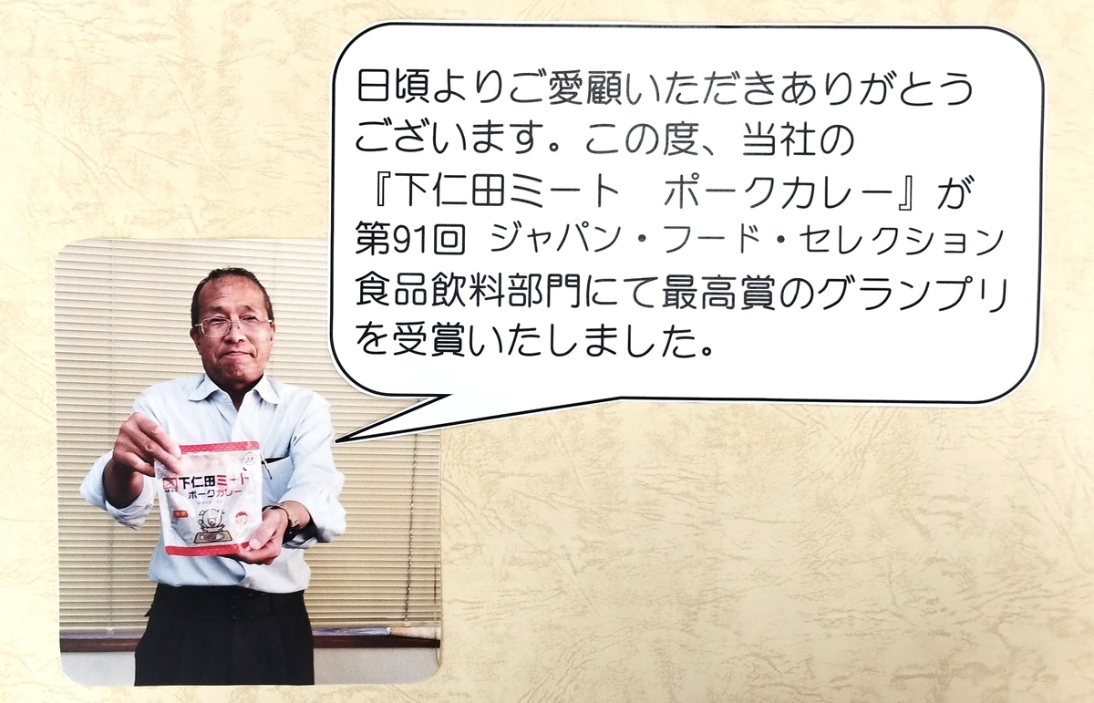 下仁田ミートポークカレーは、食の専門家が審査に参加する「ジャパン・フード・セレクション」において、最高評価であるグランプリを受賞いたしました。