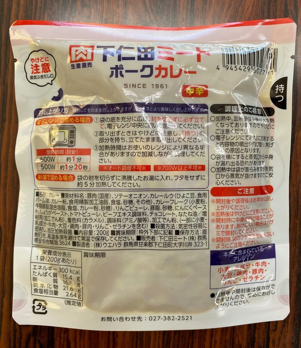 ・下仁田ミートポークカレー(中辛) 200g×6P